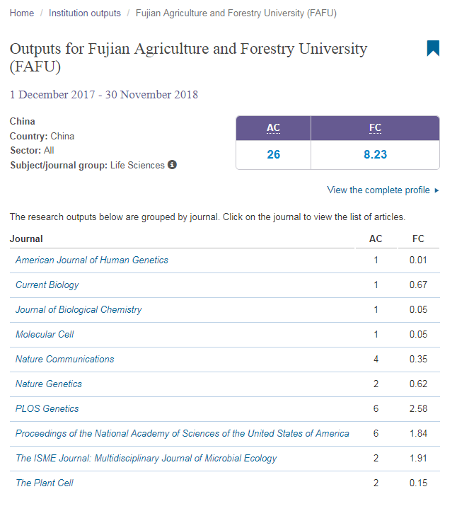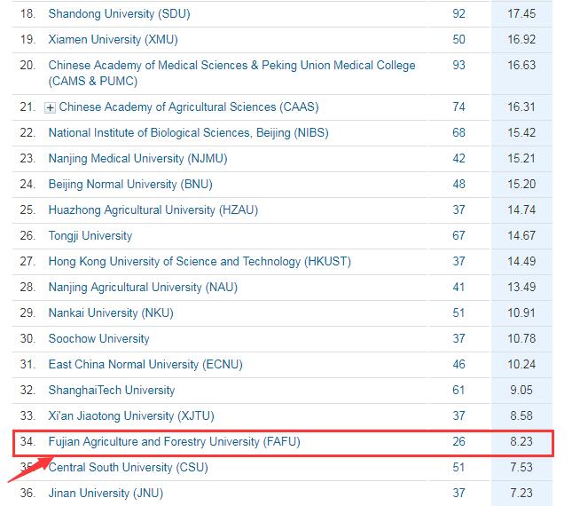 4月10日,自然出版集团更新了2018年最新的自然指数排名(统计时间节点为2017.12.1—2018.11.30),我校生命科学在自然指数中国高校排行榜中位列第34(不含中国台湾地区),在国内农林高校中位列第4,在全球科研机构中位列第408,位于中国农业大学、华中农业大学、南京农业大学之后,在省内高校仅次于厦门大学。我校在自然指数中国高校总排名(含化学、地球与环境科学、生命科学和物理学四个学科领域)中位列第111,在国内农林高校中位列第5,在全球科研机构中位列第697。