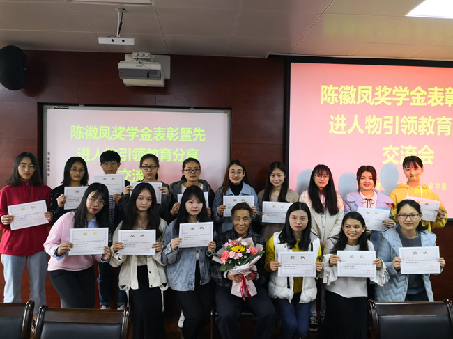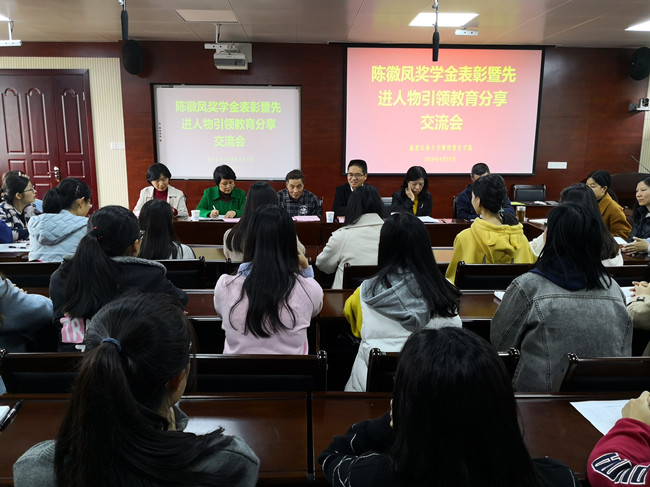 4月11日下午,继续教育学院在学院五楼会议室召开“陈徽凤奖学金”表彰暨先进人物引领教育分享交流会,学院领导班子成员、全体党员以及第二学历学生代表参加了会议,会议由学院党委副书记林素文主持。