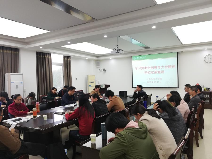 4月11日下午,马克思主义学院在明德楼613会议室,召开学习全国教育大会精神思政课教师学习班专题学习暨学校政策宣讲会。学院党委副书记(主持工作)连文主持会议。院长刘新玲、副院长李宝艳及学院教职工代表参会。