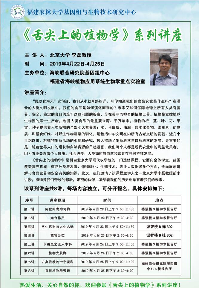 《舌尖上的植物学》系列讲座(4.22-25)