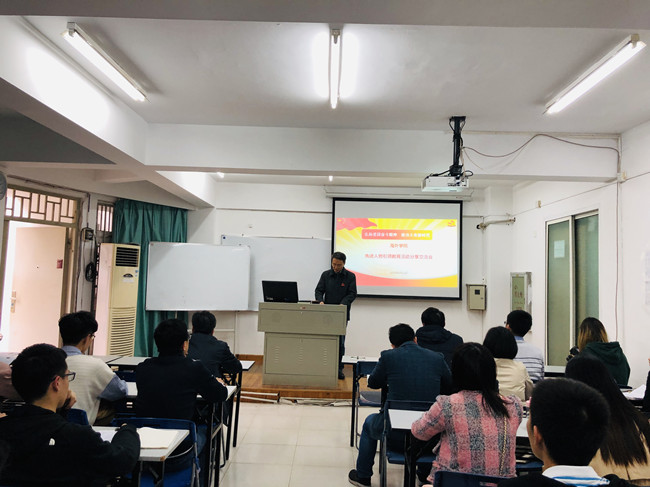4月12日下午,海外学院党委在学院研三101教室召开“弘扬爱国奋斗精神,建功立业新时代”先进人物引领教育活动分享会,副校长郑宝东莅院指导,学院教职工、学生党员、入党积极分子及团学骨干等30余人参会,院党委书记罗志雄主持会议。