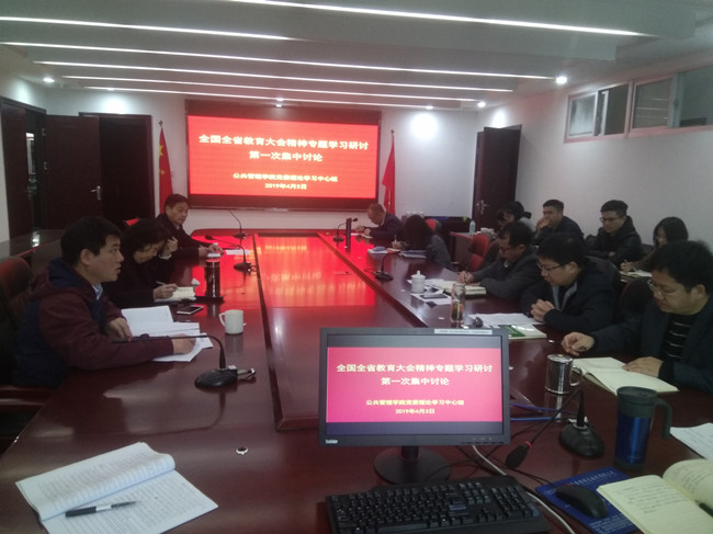 会议按照校党委的部署,围绕本次主题, 3位中心组成员分别作了题为“坚定理想信念,培育德智体美劳全面发展的新时代公管学子”;“学习习近平总书记关于教育的重要论述,发挥第一课堂立德树人功能,落实培养具有创新创业精神的基层治理人才的目标”;“将习近平总书记关于教育的重要论述贯穿于培养‘绿色创新先锋、基层治理精英’研究生全过程”的主题发言。