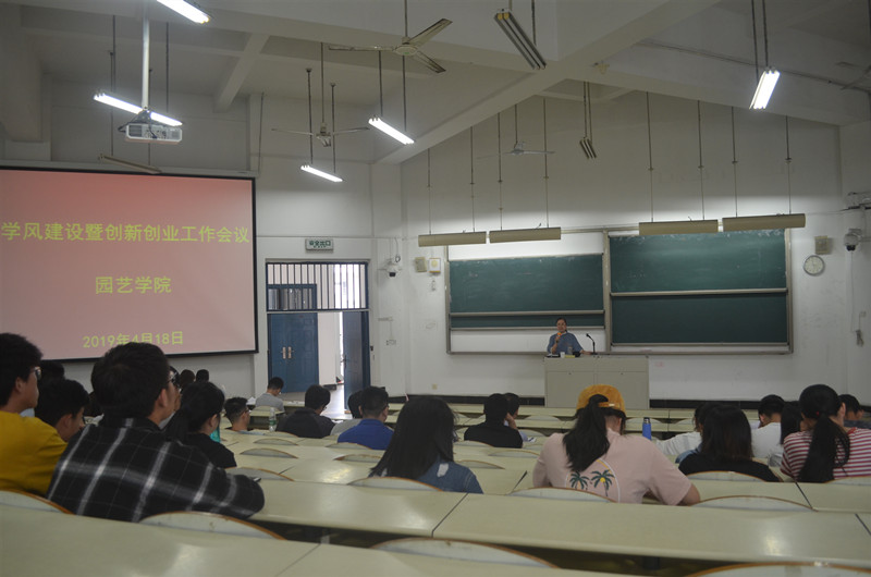 4月20日下午,园艺学院在创新楼102教室召开学风建设暨创新创业工作会议,院党委书记张华英,副书记张文元、团委书记陈萍、辅导员郑端生,团委学生会各部门副部长,各班级团支部书记、班长共计75人参加了会议。