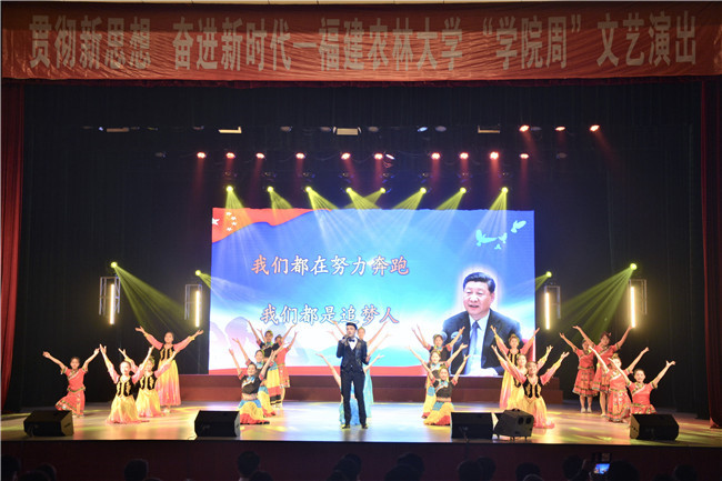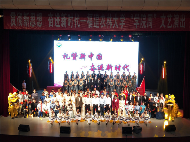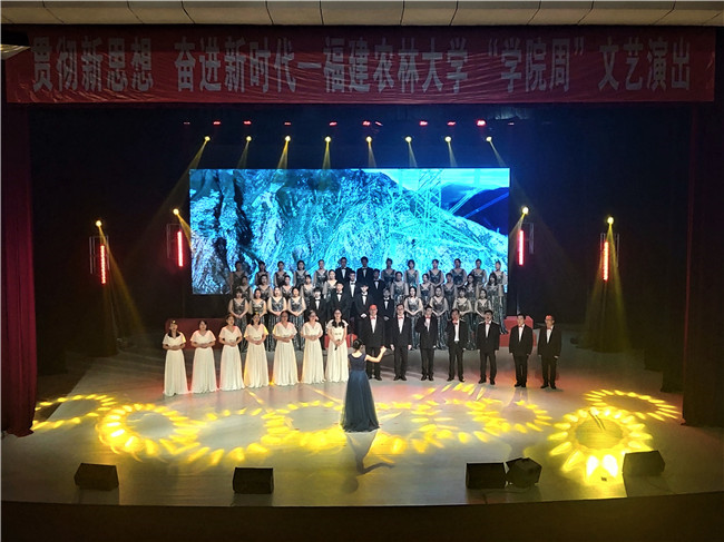 4月20日晚,动物科学学院在学校礼堂举办以“礼赞新中国,奋进新时代”为主题的 “学院周”文艺汇演,这是我校第四场“学院周”文艺活动。汇演以多样化的艺术形式学习贯彻新思想、弘扬爱国奋斗精神,结合学院特色、反映师生干事创业的向上风貌。校领导严金静、庄祥生、曾华平,各学院各机关负责人及动物科学学院广大师生一同观看了演出。此次汇演开通网络直播,在校本部第一田径场同步直播。