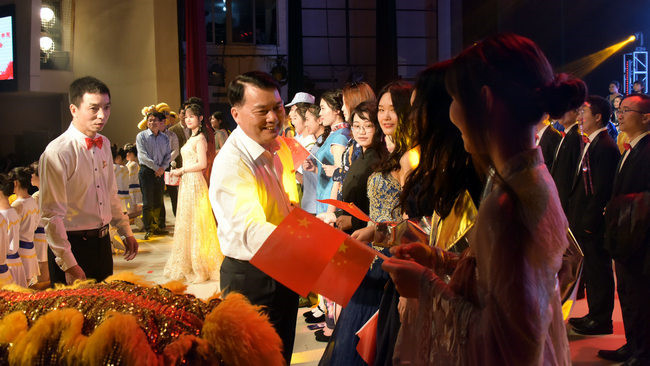 节目精彩纷呈,现场气氛热烈。一曲《我和我的祖国》,台下的学院师生起身,和着台上的师生大合唱,形成了呼应,让爱国之情在歌声中传递、在礼堂上空回响,将氛围推到最高潮处,晚会圆满落幕。整场汇演主题突出,形式丰富,特色鲜明,融合了思想性、文化性和艺术性,广大师生以蓬勃的朝气、昂扬的锐气共同唱响“一腔赤诚颂祖国,开拓奋进新时代”的旋律。