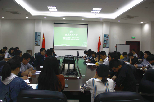 4月18日晚,安溪校区•安溪茶学院学生系统在行政楼二楼会议室召开学习全国教育大会精神专题会议。校区·学院党委副书记黄成茂,学工部部长纪文元,校区全体政工及团学各块学生干部工共80余人参加此次会议,会议由团委书记王刚主持。
