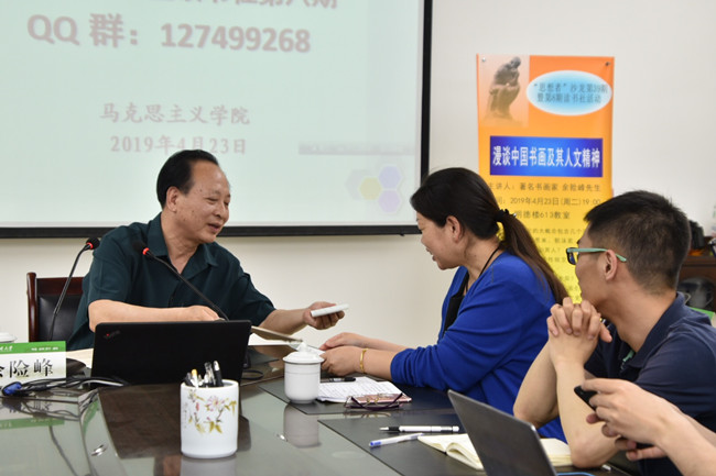 4月23日是世界读书日,为了贴合读书日的主题,我校马克思主义学院邀请了著名的书画家,同时也是中国书法家协会的会员余险峰先生入院做主题分享。此次讲座以“漫谈中国书画及其人文精神”为主题,来自全校各学院的数十名师生参与了此次讲座,讲座由马克思主义学院副院长李宝艳主持。