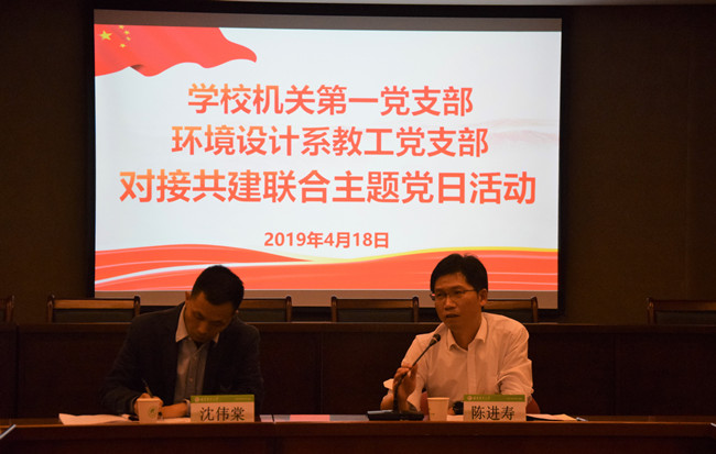4月18日下午,机关第一党支部与艺术学院园林学院环境设计系教工党支部于在综南附307开展对接共建主题党日活动。校党委常委、纪委书记邱应龙以普通党员身份出席活动,机关第一党支部党员干部10人以及艺术学院园林学院党委书记陈为德、联系环境设计系教工党支部的院领导董建文、环境设计系教工9人参加活动。活动由校纪委副书记、机关第一党支部书记陈进寿主持。