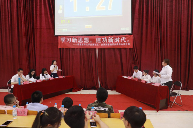 4月21日晚,由安溪校区团委主办,校区学生委员会学习部承办的“学习新思想,建功新时代”第五届辩论赛在校区创新报告厅举办。安溪校区·安溪茶学院党委副书记黄成茂,辅导员杨小飞、叶行,校区第四届辩论赛冠军队伍辩手及部分团学干部共同担任此次比赛的评委和嘉宾。