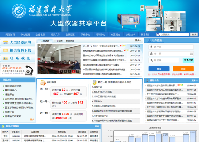 日前,大型科研仪器设备共享服务平台入网仪器和共享服务数量再创新高。截至2019年4月,我校大型科研仪器共享服务平台入网仪器数量467台(套),入网仪器的学院、科研机构(团队)达60余个,基本将我校30万大型科研仪器设备纳入校共享服务平台,入网仪器总原值突破5亿元,入网仪器提供共享服务总次数接近20000次大关,平台累计访问量近35万次。按月份统计,2018年7月份(除放假外)以来,月均预约使用仪器数量超过1000次。同时,我校还积极加入省大型科学仪器设备协作共用网,提供对外共享服务。我校共接入福建省大型科学仪器设备协作共用网大型科研仪器294台(套),入网数量位居全省高校第一。