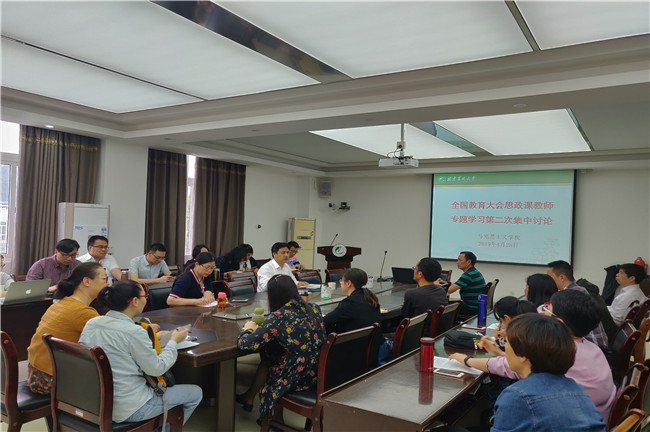各教研室教师结合课程实际交流了自己的观点。童谨老师指出,在课程中应该结合生动的案例,展开分析和讨论,引导学生自主思考社会公德、职业道德和家庭美德的意义,从公共政策、公共交往、道德品质如何培养等多方面探索如何进行道德实践,在自主的讨论和思考过程中,同学们自然而然地获得了比较生动的学习体验;江琼老师指出,作为思政理论课教师不仅要爱自己的职业也要爱自己的专业。作为教师要多读书,要古今通、中外通、多学科通,使理论与历史相结合才能使学生学的有趣、历史与现实相结合才能使学生学的有用。要读有字之书、无字之书、心灵之书,在历史的细节当中在事理与情感的交流中让学生真正感受到历史的魅力;刘淑兰老师指出,高校立身之本在于立德树人。高校要培养德智体美劳全面发展的合格建设者和可靠接班人,核心根本在于立德树人。在思政理论课程中要在阐释理论中培养核心价值观、在解疑释惑中增强“四个自信”、在优化方式方法中提升教学吸引力、在完善自我的过程中增强育人效果;于峰老师指出,通过加强思政课教师队伍建设,深化思政课教学改革,加强思政课制度建设,有效解决“谁来培养”、“怎样培养”、“如何实现长效培养”的问题,实现价值引领和知识传授的有机统一,推动“思政课程”与“课程思政”的立体化育人。