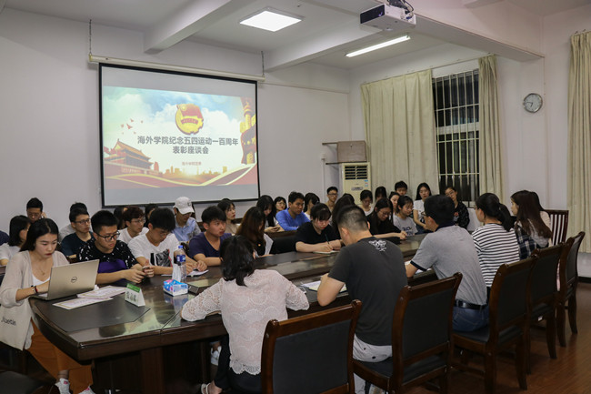 在五四运动一百周年来临之际,4月26日晚,海外学院团委召开纪念五四运动一百周年表彰暨座谈会,学院党委副书记李晓辉、全体辅导员、学生团干部、受表彰青年学生参加会议。