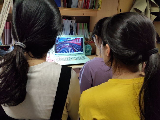 学生在宿舍收看直播