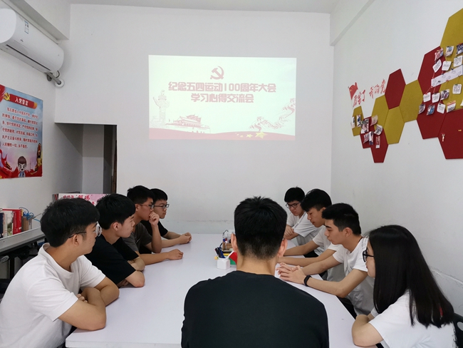 学院e修哥志愿服务团党支部观看纪念五四运动100周年大会直播