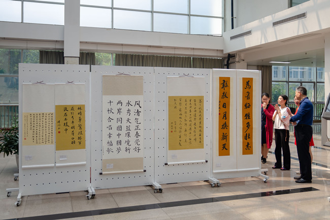 据悉,这次参展的作品为前期面向我校和福建省中华优秀传统文化教育促进会书画艺术教育专委会征集的作品,作品征集以“礼赞新中国,奋进新时代”为主题,作者可以书画形式表达自己对主题的理解。现场参展作品包括了福建省书画艺术委员会副主任陈恒华的《不忘教育初心,方得树人始终》,副主任霍尚军的《厚德载物》等在内的50多幅书画作品。