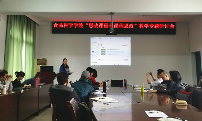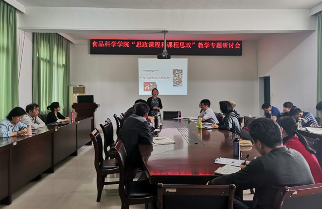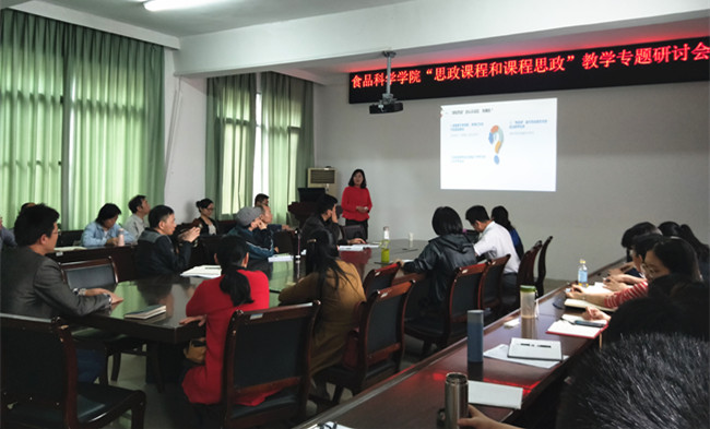 5月9日,食品科学学院“思政课程和课程思政”的教学专题研讨会在406会议室举行。此次研讨会特别邀请到我校马克思主义学院的黄秀玲老师,并作“课程思政”的方法和实践路径的主题报告。食品科学学院党政领导班子全体成员和全体教师参加此次研讨会。研讨会由姚闽娜老师主持。