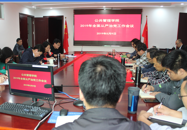 5月9日,公共管理学院召开2019年全面从严治党工作会议,学院班子成员、党委委员、科级干部、党支部书记、系主任、辅导员等参加会议,会议由学院党委书记曾起郁主持。