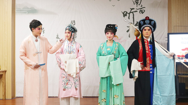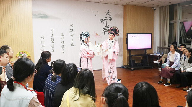 5月8日晚,图书馆【南亩听荷】文化沙龙•你我都有艺术菌(第二期)在图书馆学习空间四举办。本次沙龙的主题是“浮春若梦”戏曲沙龙分享,邀请“儒林有戏”戏曲工坊林特、林隽永、陈菲、张林娜四位老师做一场戏曲表演与文化分享相结合的主题沙龙,吸引了40多名师生参与。