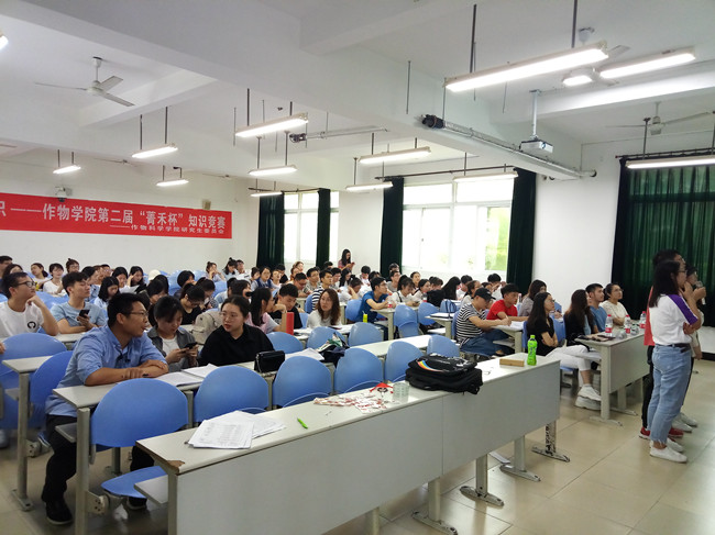 5月12日下午,作物科学学院研究生委员会于在田家炳楼105教室举办了以“新时代 新青年 新知识”为主题的“菁禾杯”知识竞赛。辅导员卢艺彬、校研究生委员会副主席林晨、院研究生委员会主席曾健杰、院团总支书记林静娴和各比赛小组成员等70余人参加了此次活动。