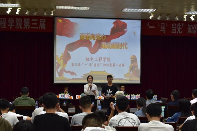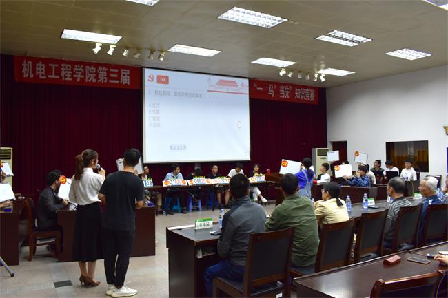 5月10日,机电工程学院第三届大学生学习马克思主义理论“一‘马’当先”知识竞赛决赛在校多功能厅举行。校关工委副主任兼秘书长陈辉钦、校关工委副主任兼院关工委副主任何聪惠、院党委副书记李健英、副院长陈学永以及各年级辅导员和学生代表等近200人观看了比赛。