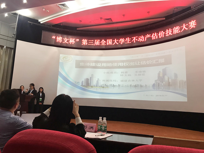 5月11-12日,由教育部公共管理类教学指导委员会、全国高校土地资源管理院长联席会主办,中国矿业大学(徐州)环境与测绘学院承办的“博文杯”第三届全国大学生不动产估价技能大赛在在江苏省徐州市落下帷幕。本届大赛共有来自中国人民大学、四川大学、浙江大学、中国矿业大学等35所高校的37支队伍进入决赛。我校资源与环境学院国土资源系江晓忠老师指导的学生团队(成员:2016级土地资源管理专业吴丽能、邓晓敏、杨惠、钟玉娟)进入决赛,荣获三等奖。这是资源与环境学院继第二届大赛荣获三等奖及优秀组织奖后又一次取得较好成绩。