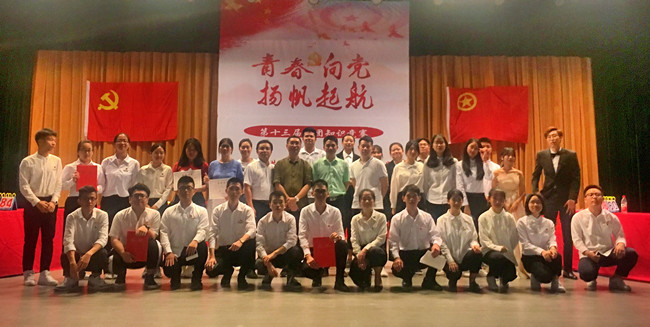 5月14日晚,由东方学院团委主办的以“青春向党,扬帆起航”为主题第十三届党团知识竞赛在校区综合楼三楼大礼堂拉开序幕。院党委专职副书记黄斌出席、院团委书记谢元瑞、各系党总支书记、系团委书记出席。