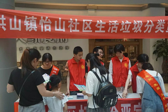 在社区负责人的指导下,志愿者们协助组织了互动游戏,引导大家在垃圾分类宣传板上签字承诺,向小学生及家长们普及垃圾分类知识,号召大家为垃圾分类尽一份心,出一份力。
