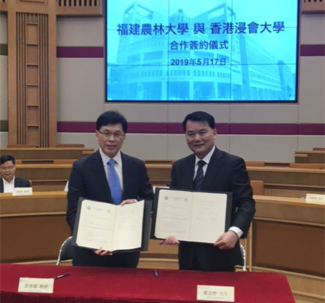 严金静与香港浸会大学副校长黄伟国共同签署两校合作协议