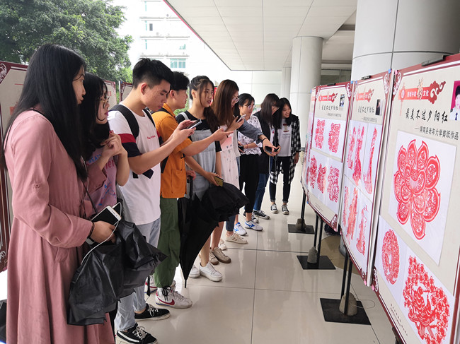 5月17日,艺术园林学院2017级本科生党支部组织全体党员前往逸夫图书馆前榕树广场参观“福”文化主题展活动。