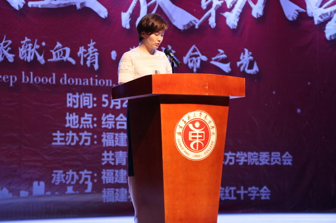 会上,曾嘉代表省血液中心向长期关心、支持无偿献血的集体和个人表示衷心的感谢,对获奖的先进集体和个人表示祝贺。她说到:无偿献血工作能够取得巨大的成绩,与东方学院的领导及有关组织的重视和支持息息相关,也与一个个师生默默的无私奉献分不开,我们共同挽救了无数人的生命,又感化、带动了更多师生加入无偿献血队伍,起到了显著的模范带头作用,为福建省无偿献血工作做出了突出贡献。为了褒扬无偿献血者的无私奉献精神,倡树新风正气,我们将以此表彰大会激励更多的师生加入到无偿献血行列,助力校园精神文明建设,大力弘扬社会主义核心价值观,提倡“人道、博爱、奉献”的精神。