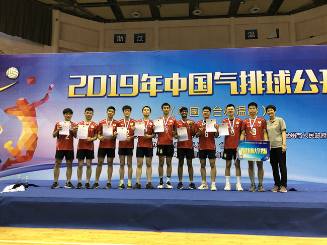 我校男子气排球队与湖南师范大学、福建师范大学、南华大学、广州体育学院等院校的运训专业队伍同台竞技,我校队员虽身体素质、身高等与对手存在差距,但全体队员不畏强手、敢打敢拼、顽强拼搏,充分展现出平时训练的成果,发挥出色,取得了大学生男子组第三名(铜牌)佳绩。
