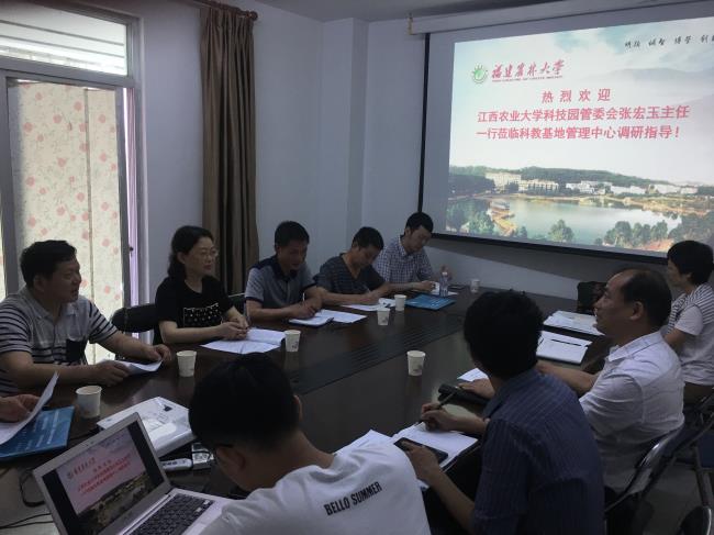 5月27日,江西农业大学农业科技园管委会主任张宏玉一行6人到我校科教基地管理中心交流。期间,双方举行了座谈会,并对校内教学实践基地进行了实地考察。