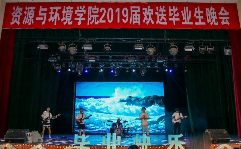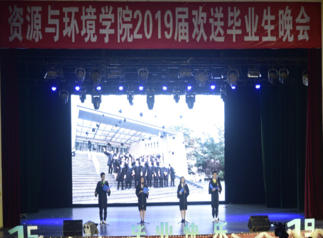 5月27日晚,资源与环境学院举办主题为“知否知否,他日海棠依旧”学院欢送2019届毕业生晚会。学院党委副书记(主持工作)陈月霄、院长周顺桂、副书记刘强、各系系主任、博硕士生导师、毕业班班主任、辅导员及学院2019届全体毕业生参加晚会。