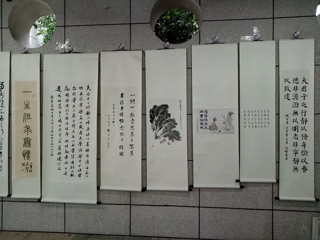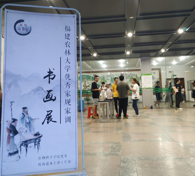 经过一段时间的征集和准备,5月25日晚,学校优秀家规家训书画展在大学生活动中心前举办。本次活动共展示18副字画作品,参展作品以国画和书法为主,以“耕读传家久,家风继世长”为序,18幅作品从不同角度、不同层面展示了优秀家规家训的精神力量。“传家有道惟存厚,处事无奇但率真”,此次活动吸引了许多师生驻足观看,大家纷纷表示通过观展更加深刻地感受到传统家规家训的文化魅力,更加坚定了文化自信。