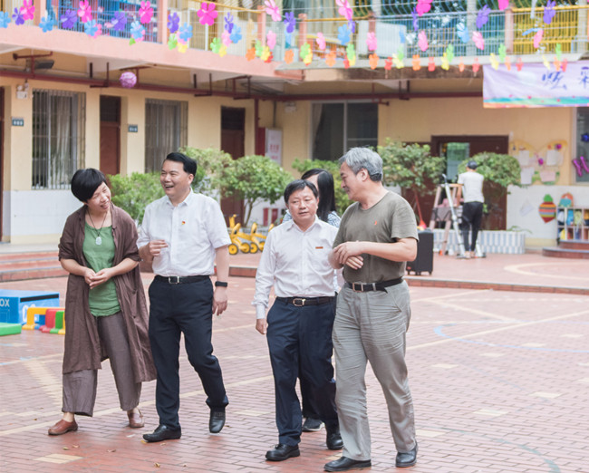 校领导一行认真察看了幼儿园的硬件设施和园区环境,详细了解了幼儿在园人数、生活情况等,对幼儿园反映的园舍和厨房扩建、新增师资等需求表示支持,对近年来附属幼儿园取得的良好办学成效给予了充分肯定,对教师们的辛勤付出表示衷心感谢,希望附属幼儿园继续发挥办学优势和特色,进一步提高办学质量,加强师资队伍建设,打造成让家长满意、让孩子健康快乐成长的优质幼儿园,让学校青年教师无后顾之忧。