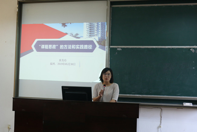 黄秀玲老师从“课程思政”的提出入手,澄清“课程思政”四个认识误区,深入挖掘课程中蕴含的课程思政元素,从而找到“课程思政”的方法和实践路径。黄秀玲老师提出课程思政的五个基本元素和课程思政教学设计的六大原则,学院教师听后普遍反映受益匪浅。