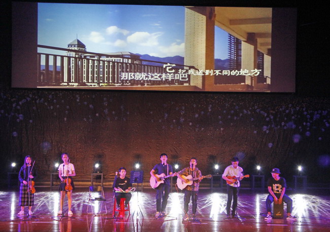 校领导与师生一同观看演出