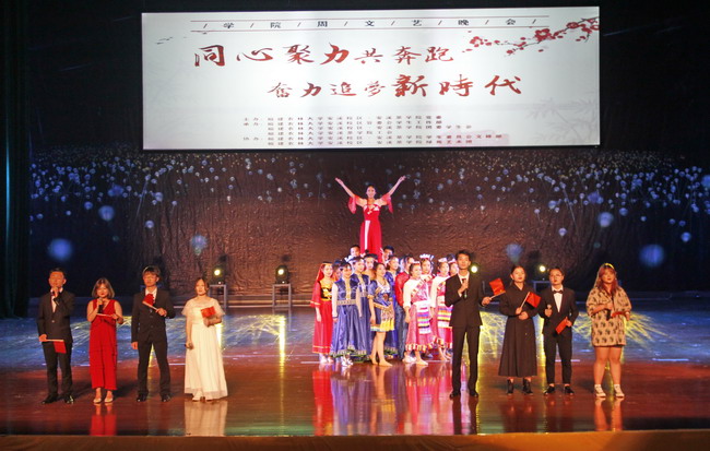 5月30日晚,安溪校区·安溪茶学院在校区礼堂举办以“同心聚力共奔跑,奋力追梦新时代”为主题的“学院周”文艺汇演,这是我校第十场“学院周”文艺汇演。汇演分“初心·忆往昔岁月峥嵘”、“立德·看今朝风华正茂”、“使命·新时代风景独好”三个篇章,通过茶艺展示、歌曲演绎、舞蹈表演、诗歌朗诵等多种表现形式,唱响礼赞新中国、奋进新时代的昂扬旋律,展现了安溪茶学院师生的青春风采。副校长黄炎和与机关有关部门同志、安溪校区全体师生共计1200余人一同观看演出。