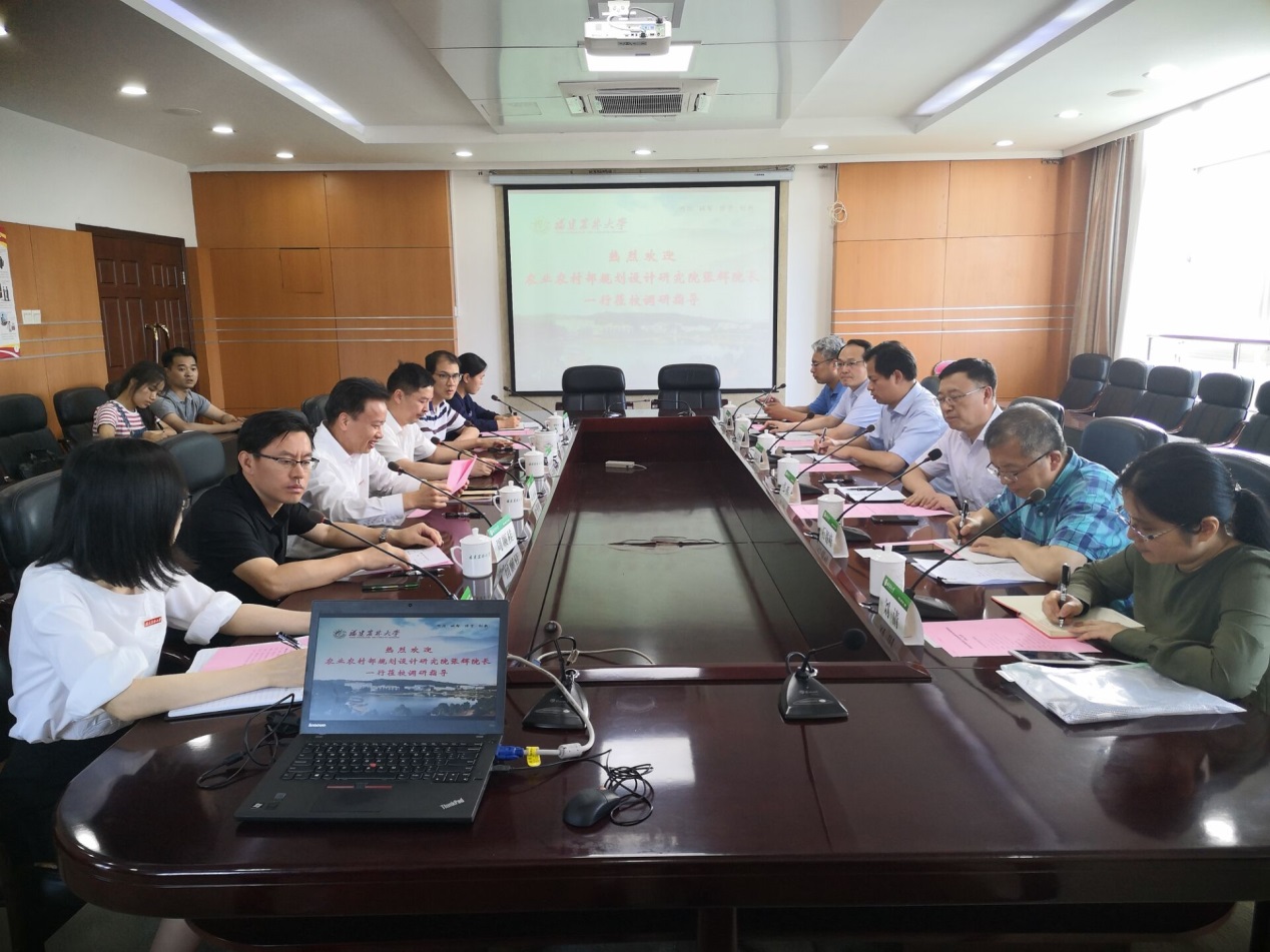 副校长郑宝东参加座谈会,会上,郑宝东代表学校向张辉一行的到来表示欢迎,对农业农村部规划设计研究院一直以来对我校的关心和支持表示感谢,并简要介绍了学校的基本情况。科研院负责人介绍了我校科技创新工作和社会服务、对口扶贫工作情况。