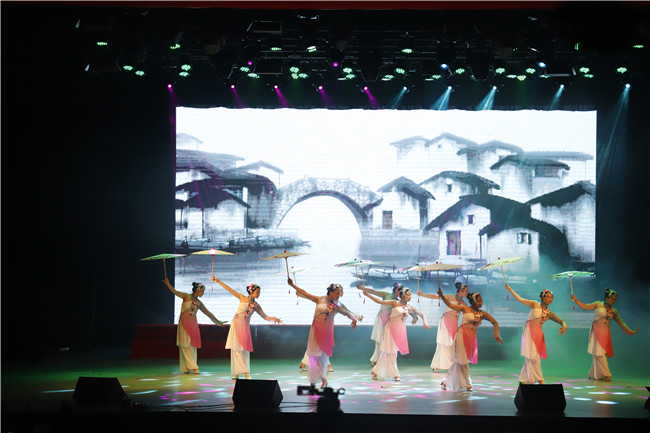 晚会在极具青春活力的乐队弹唱《21 Guns》中拉开序幕。舞蹈《又见江南雨》、歌曲《唐诗》、器乐合奏《渔舟唱晚》、太极表演《阴阳割昏晓》充分展示了中华优秀传统文化的独特魅力。诗朗诵《坊巷寻梦》、歌曲《莫斯科郊外的晚上》、舞蹈《晨曦中的玫瑰》、礼模走秀《年代记忆》等陆续登台表演,展现了文法学子牢记嘱托、砥砺奋进、激扬青春、书写韶华的决心。歌曲《在路上》表达了毕业生对母校和老师的不舍之情和坚定筑梦之路的奋斗精神,歌舞《赞赞新时代》给现场观众带来了青春正能量,朗诵《宪法,我向您致敬》奏响了依法治国的最强音。最后,晚会在大合唱《我的祖国》中落下帷幕,文法学院全体师生用热情高昂的歌声表达了对祖国的深切热爱,抒发了对新中国七十华诞的美好祝愿。
