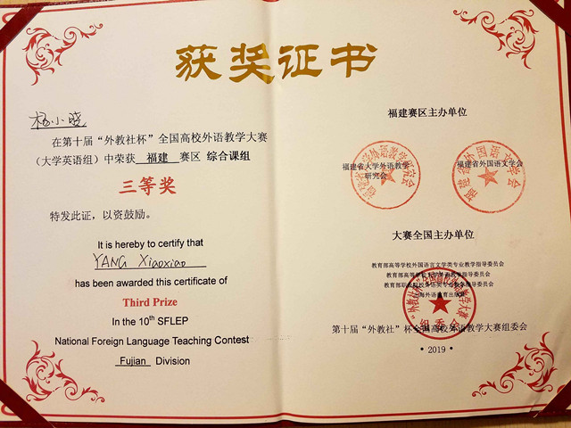 经过专家评委认真、客观、公正的评审,最终,来自我校东方学院文法系的杨小晓老师凭借优秀的教学设计能力和扎实的语言功底获得了三等奖。