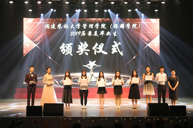晚会在热情的爵士舞蹈《Team On Fire》中拉开序幕。院十佳歌手联唱《年少的你》和2017级人力资源管理团支部呈现的情景朗诵《陪你度过农大岁月》带领2019届毕业生倾情回顾了美好的大学时光。民舞《海上民谣》、啦啦操《跳跃青春》以及歌曲《我的梦》的精彩演绎,表达了管院学子不懈奋斗的决心和对中国梦必将实现的坚定信念。现场举行的管理学院(旅游学院)2019届最美毕业生颁奖典礼,表彰了四年来在学习、科技、就业、安全保卫、志愿服务、文艺、体育等方面表现突出的毕业生们,将整场晚会推向了高潮。