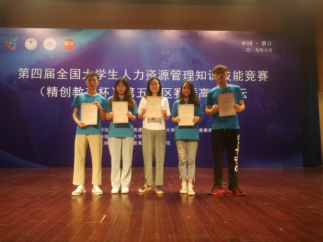 6月1日-2日,第四届全国大学生人力资源管理知识技能竞赛(精创教育杯)第五大区赛在浙江工商大学杭州商学院举行。第五大区赛覆盖地区为上海、江苏、浙江、福建、安徽5个省市,共有51支队伍参赛。东方学院李华栋、翟文刚、张钰、洪妙娟四名同学组成的代表队在学院管理系王烨烨老师、王婧老师的共同指导下,经过激烈的角逐,最终与福州大学、上海财经大学等多所高校同夺大赛二等奖。
