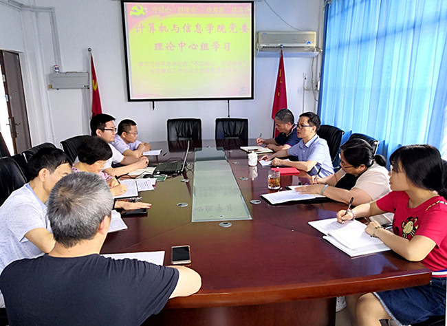 6月5日,计算机与信息学院党委理论学习中心组开展专题会议,学习习近平总书记在“不忘初心、牢记使命”主题教育工作会议上的重要讲话精神,传达学习全省“不忘初心、牢记使命”主题教育工作会议精神,以及开展全国全省教育大会精神专题学习研讨第三次集中讨论。会议由院党委书记陈宜大主持。