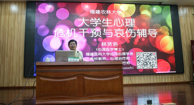 福建医科大学人文学院院长、福建省心理学会副理事长林贤浩从“心理危机识别、危机干预、哀伤过程、哀伤辅导”四个方面做了“大学生心理危机干预”的专题培训,并就大学生心理危机相关事件与辅导员进行了互动解答。