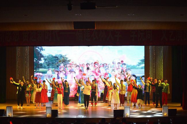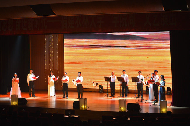 晚会在舞蹈《鼓瑟舞裳》所再现还原的敦煌壁画《十二仙女图》中拉开序幕,音舞诗画《我们的经典·玉人声声》表达了农林大学子对经典文化内涵的崭新理解。以武术、舞蹈、经典诵读等多种形式有机统一的节目《少年中国说》,演绎了“江山代有才人出”的盛世图景。小品《海魂》、歌舞《天下归心》、情景表演《共和国的脊梁》、朗诵《奋进吧 我们的新时代》、啦啦操《时代正青春》陆续登台,充分展现了材料工程学院学子多才多艺、自信昂扬的风采,博得现场观众的阵阵掌声。学院老师刘学莘献唱的《把一切献给党》更是把晚会推向了高潮,动人的旋律在刘老师富有感染力的歌声中流露出对党和国家的真挚情感。灯影戏《家国光影》灵感来自于凉山救火英雄的英勇事迹,节目以“光影”与“家书”作为载体,展示了当代消防英雄穿越火光、不惧生死、一心为民的英雄气概。最后,师生合唱团表演的合唱《我和我的祖国》作为晚会压轴节目,豪情万丈而又饱含深情,现场观众无不为之振奋、动容,为晚会的圆满落幕增添了浓墨重彩的一笔。