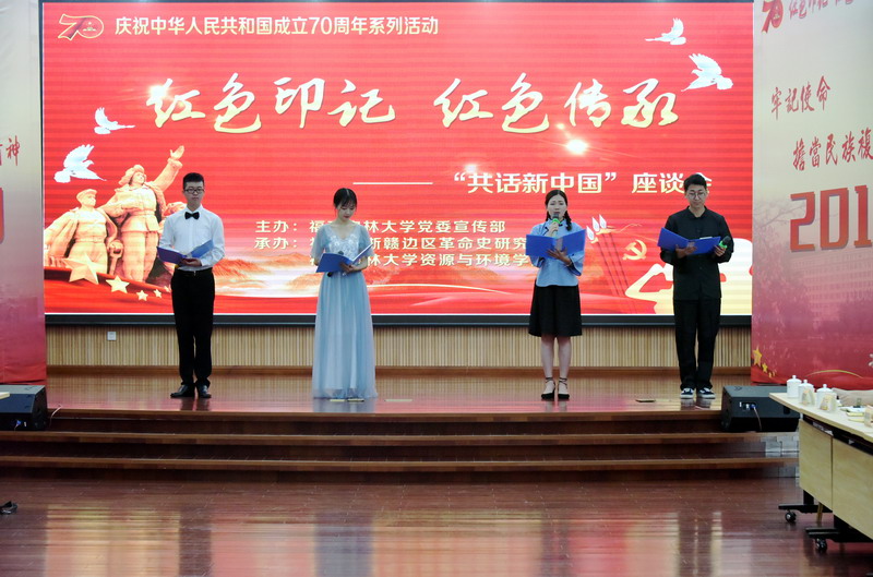 6月11日,由我校党委宣传部主办,福州闽浙赣边区革命史研究会、资源与环境学院承办的“红色印记,红色传承——共话新中国”座谈会在常盛会议中心举行,共和国的三代人汇聚一堂,共话新中国。