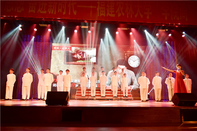 晚会在气势磅礴的男声合唱《少年中国说》中拉开序幕,情景秀《不能忘却的纪念》带领着观众回到了百年前的青春校园,体味五四青年的服饰之美、精神之美。舞蹈《八班教室》展现了中国仁人志士的匹夫有责与青春无悔,话剧《锣鼓喧天的广场》、小合唱《国家》、朗诵《美好新时代》、歌曲串烧、话剧《老爸》等节目陆续登场,与观众一起驾着历史的长车,重温一段段激情燃烧的岁月,唱出一首首荡气回肠的新时代赞歌。一曲群舞《红船》将晚会推向高潮,演员们以他们极富感染力的表演博得了观众阵阵掌声,所演绎出的红船精神震撼着在场的每一个人。影子舞《青春万岁》再现了大学四年生活,交院青年学子们用心用情演绎着农林大人的五种品格以及新时代青年立志成才振兴中华的决心,赢得在场师生阵阵喝彩。学院教师以及毕业生党员代表以对话的方式为现场观众带来了饱含深情的《我们的毕业宣言》,晚会在激情昂扬的师生合唱《我们都是追梦人》、《光荣啊中国共青团》中落下帷幕。