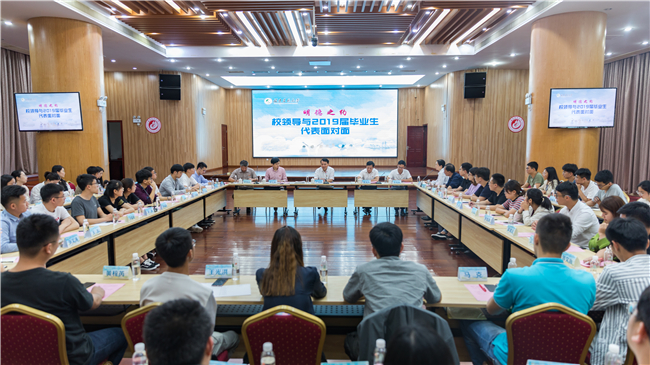 又是一年毕业季,我校2019届毕业生已圆满完成学业,即将踏上新的人生征程。6月13日下午,“明德之约——校领导与毕业生面对面”座谈会在常盛会议中心举行。校党委书记严金静、校党委副书记曾华平,宣传部、学工部、校团委、教务处、研究生院、后勤处等职能部门负责人与来自21个学院的57位毕业生代表面对面座谈,倾听他们的大学生活感悟和对学校发展的建议,表达对他们的祝贺与祝福。
