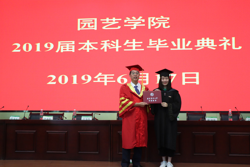 2019届优秀毕业生代表,原院学生会主席、2018年度国家奖学金获得者、保送浙江大学硕士研究生、2015级园艺专业的林夏慧同学发言,回顾了大学四年期间的学习、生活情况,表达了与老师、同学之间的深厚情谊;院学生会副主席、2016级园艺专业张晓月同学作为在校生代表发言,表达了对2019届全体毕业生的衷心祝愿和惜别之情。
